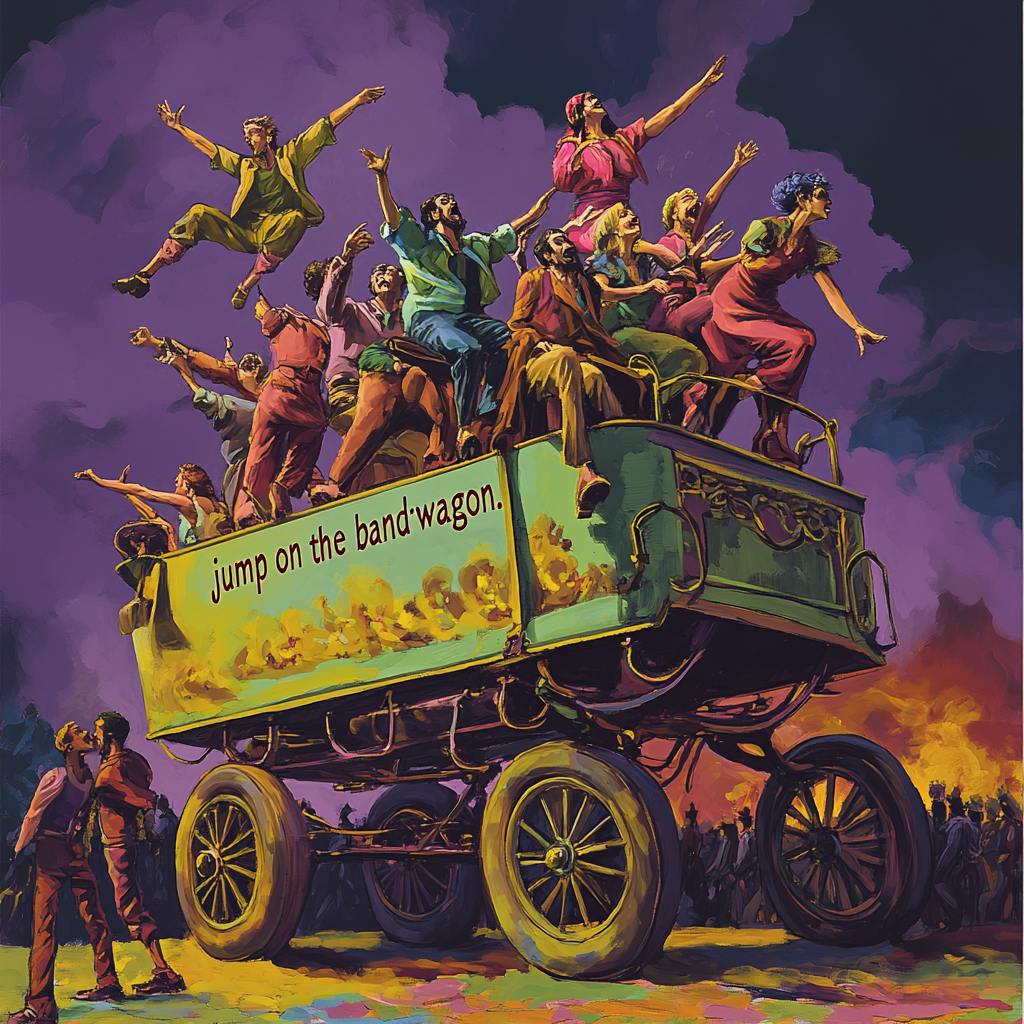 - Dùng khi bạn muốn nói rằng ai đó tham gia vào một xu hướng chỉ vì nó đang thịnh hành, không nhất thiết là vì họ thích hoặc tin tưởng vào điều đó.