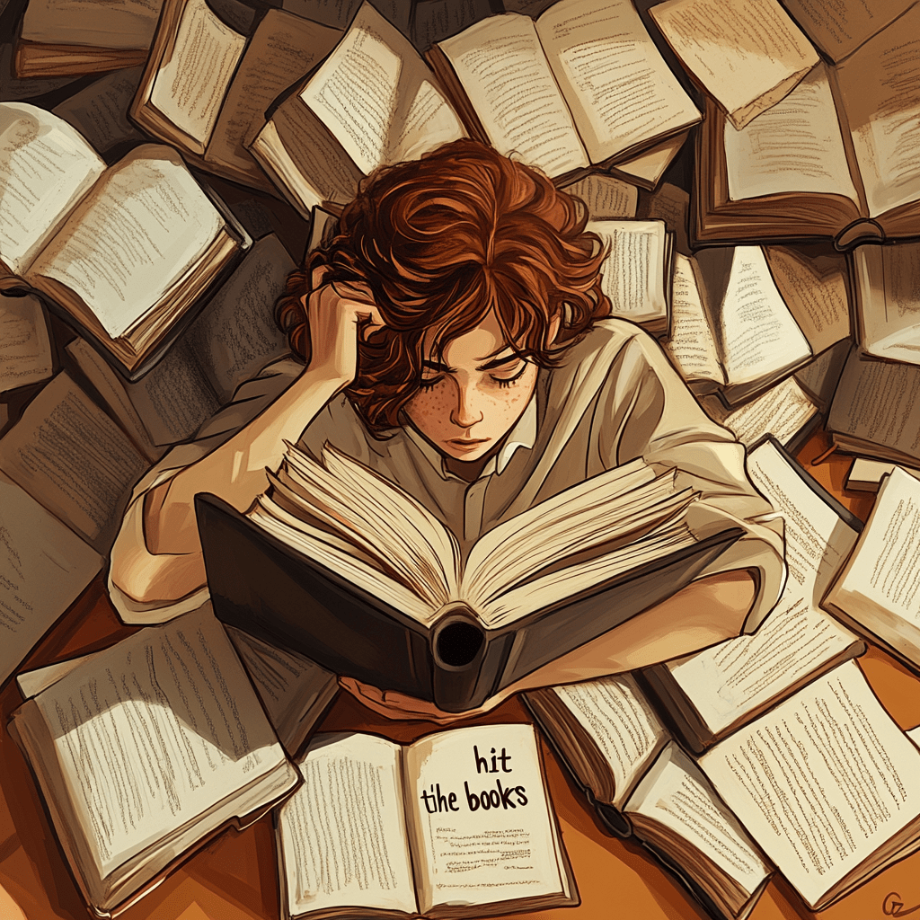 - Idiom này có nghĩa là bắt đầu học tập nghiêm túc, thường là chuẩn bị cho kỳ thi hoặc nghiên cứu.